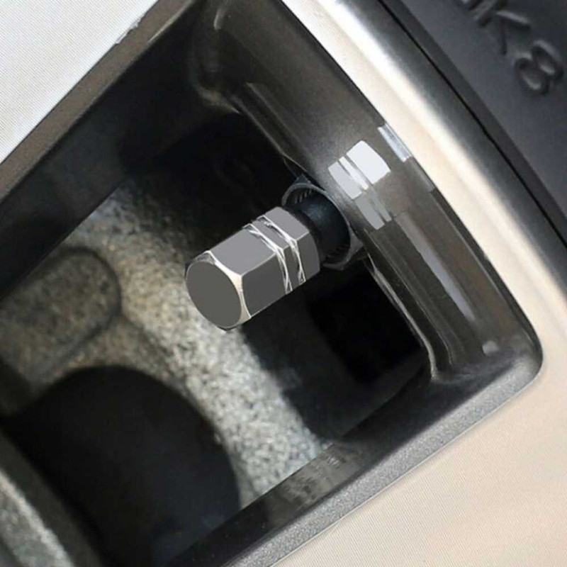 Set 4 Capace Hexagonale pentru Valve Auto, din Aluminiu, 1.8 cm, Argintiu si Perie SoftTouch cu Fire din Nylon si Manger Ergonomic