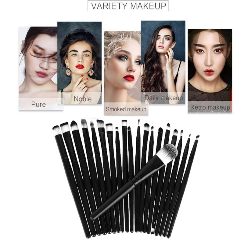 Setul profesional cu 20 de pensule pentru machiaj este realizat din fibre sintetice de înaltă calitate, moi și delicate cu pielea, asigurând o aplicare uniformă a produselor. Pensulele sunt antialergice și potrivite pentru toate tipurile de piele, prevenind reacțiile alergice. Designul elegant include mânere negre clasice și vârfuri colorate în stil ombre. Pensulele pot fi spălate ușor cu apă și săpun, iar setul include instrucțiuni pentru întreținere. Versatilitatea permite utilizarea pentru machiajul feței, ochilor și buzelor, oferind multiple opțiuni pentru stiluri diverse.