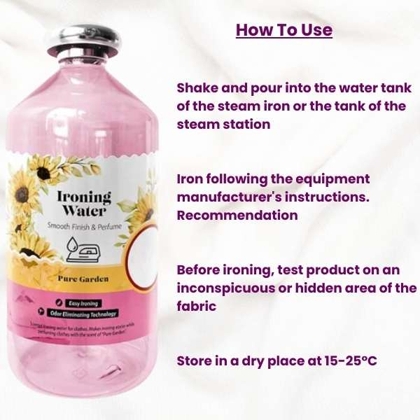 Formula sa inovatoare netezeste fibrele, reduce ridurile si protejeaza fierul de calcat impotriva depunerilor de calcar, prelungindu-i durata de viata. Apa parfumata Pure Garden este compatibila cu toate tipurile de tesaturi, de la bumbac la matase, si este ideala pentru utilizare zilnica.