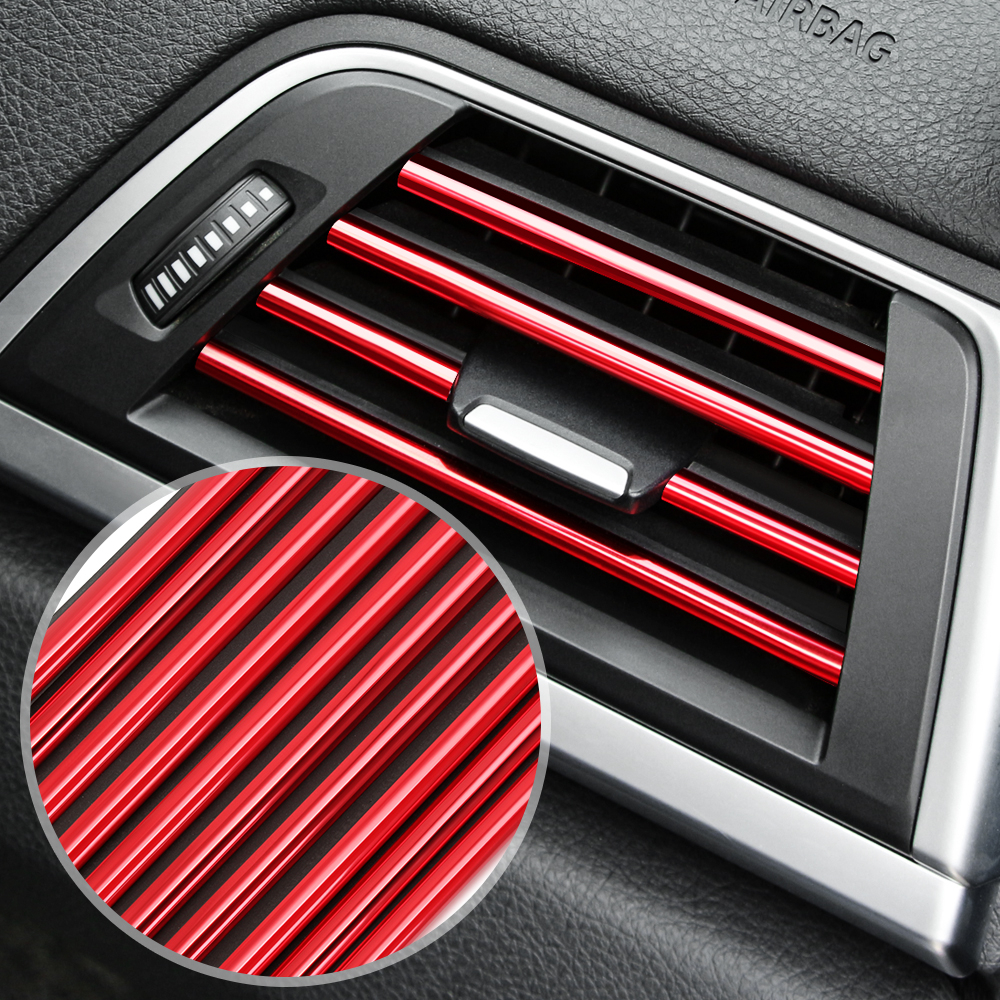 Această rolă ornament auto de tip ""U"" este concepută pentru a fi aplicată pe muchii sau pe grilele de ventilație ale autovehiculelor. Cu o lungime totală de 15 metri liniari și o culoare roșie distinctivă, produsul oferă o soluție practică pentru protecție și aspect estetic în interiorul sau exteriorul mașinii.