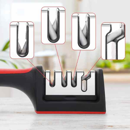 Pastreaza-ti instrumentele de bucatarie mereu ascutite cu ascutitorul multifunctional cu 4 niveluri, ideal pentru cutite si foarfece de uz casnic.