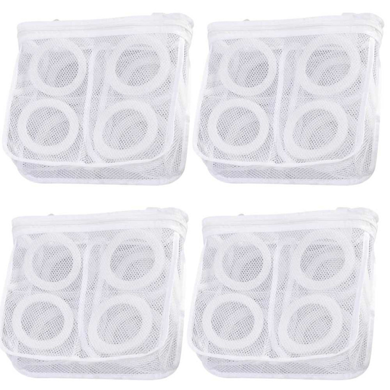 Setul de 4 saculeti pentru spalare si uscare este ideal pentru protejarea incaltamintei usoare si hainelor delicate in masina de spalat sau uscator. Fabricati din poliester rezistent, saculetii de 28 x 27 cm permit circulatia apei si aerului, prevenind deteriorarea tesaturilor. Fiecare saculet are fermoar mic, rotunjit si ascuns intr-un compartiment special pentru siguranta si bucle practice pentru agatare la uscare. Reutilizabili si eficienti, saculetii asigura spalari organizate si protejate, fiind indispensabili in orice gospodarie.