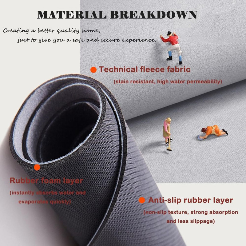 Structura materialului absoarbe instantaneu apa, protejând podeaua de umezeală și menținând baia curată.
