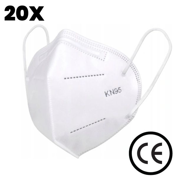 Set 20 buc Masca de protectie KN95 cu 5 straturi CE0598, FFP2, certificate CE, Alb