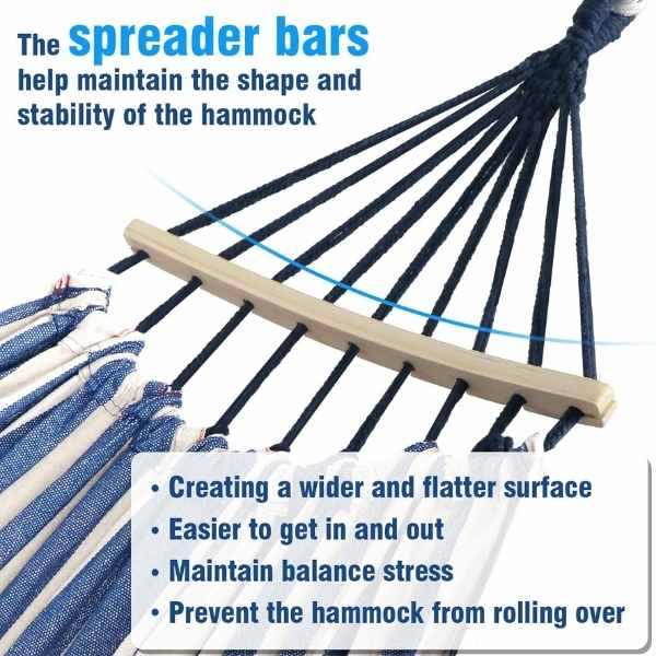 Montajul rapid si facil al cortului si hamacului, stabilitatea suportului din lemn, si accesoriile incluse asigura o utilizare practica si confortabila fara complicatii.