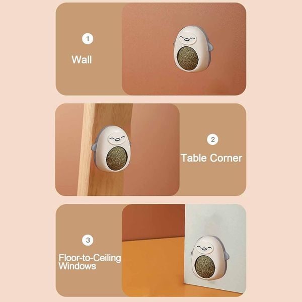 Se monteaza pe suprafete plane sau pe perete folosind banda adeziva inclusa. Pisica poate interactiona cu mingea rotativa pentru stimularea simturilor si igiena orala. Recomandata pentru pisicute active si jucause care au nevoie de stimulare mentala si fizica.