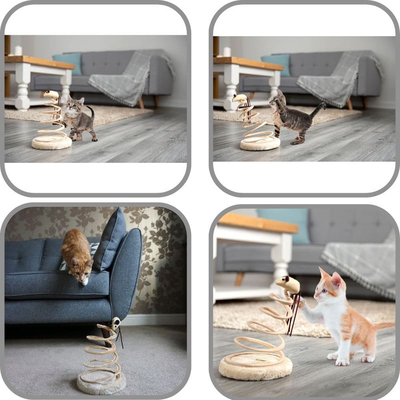 Descopera o experienta de joaca captivanta pentru pisicuta ta cu Jucaria Interactiva pentru Pisicute - Ascutitor de Gheare, in forma de Soricel cu Coada Lunga. Dimensiunile de 16 x 23 cm ofera un spatiu perfect pentru activitati jucause. Baza este confectionata din plus, asigurand un mediu moale si confortabil. Colturile netede si rotunjite protejeaza blanita si pielea delicata a pisicii. Arcul metalic, acoperit cu husa de microfibra, este rezistent si sigur, oferind o miscare dinamica ce stimuleaza instinctele naturale de vanatoare. Pull-back-ul si eliberarea arcului activeaza jucaria, aducand jocuri pline de energie. Disponibila in ton bej, adauga un element estetic placut mediului de locuit. Specificatii: Inaltime 23 cm, Diametru 16 cm; Materiale: Metal, plastic si sisal; Culoare: Bej.