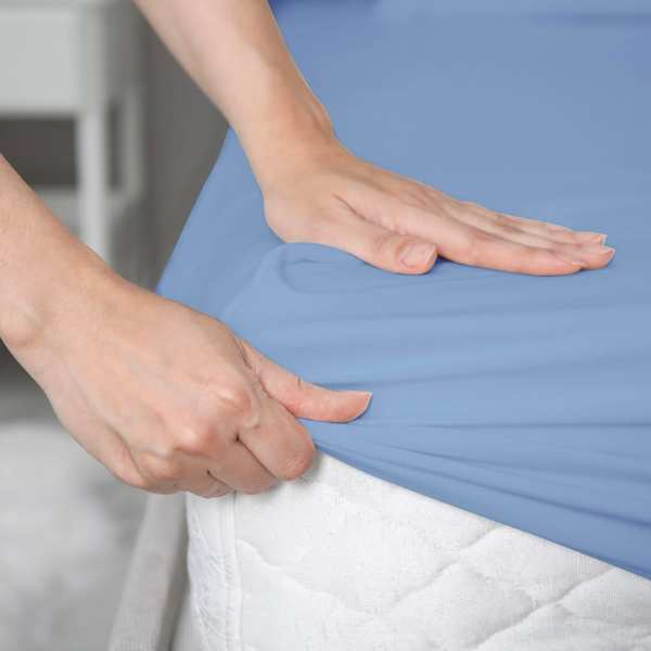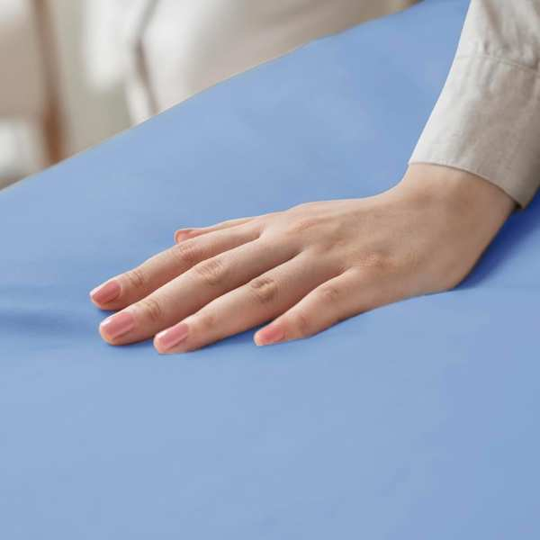 Confort optim datorita respirabilitatii materialului, fixare sigura pe saltea fara incretituri, versatil pentru utilizare acasa sau in unitati turistice si aspect elegant prin culoarea albastru clasic.