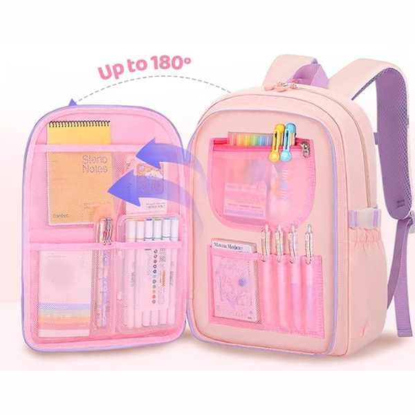 Ofera o organizare practica a obiectelor datorita compartimentelor si buzunarelor multiple, este confortabil la purtare pe termen lung si fabricat din materiale durabile, impermeabile si usor de intretinut. Designul vesel si colorat este potrivit pentru fetitele active.