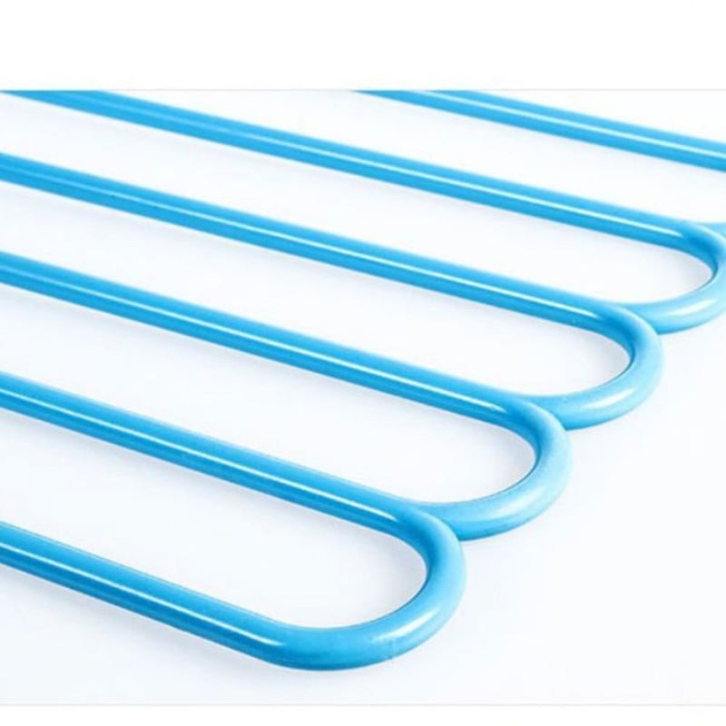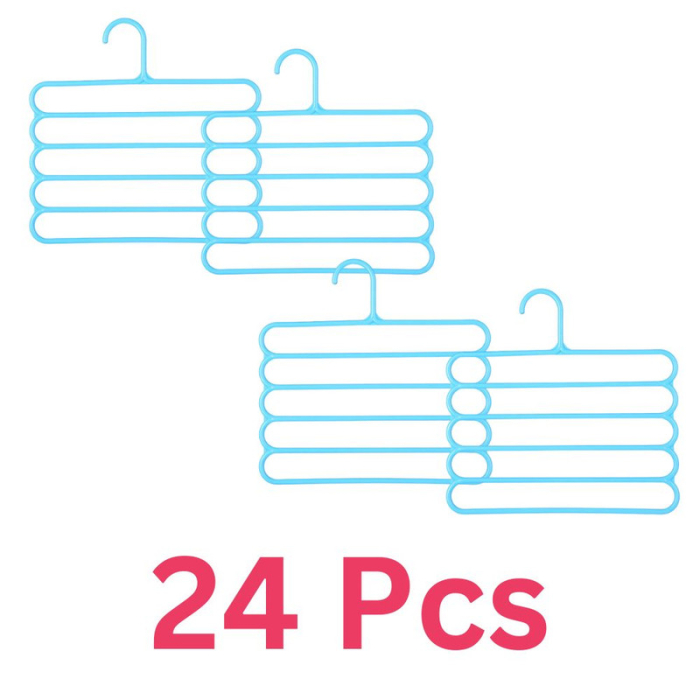 Setul de 24 umerase multifunctionale din plastic durabil, albastru, cu 5 pozitii, este ideal pentru organizarea eficienta a hainelor si accesoriilor. Bratele antiderapante previn alunecarea articolelor, inclusiv a celor delicate. Dimensiunile compacte de 31 x 31 cm si distanta de 5 cm intre brate permit agatarea hainelor, cravatelor, esarfelor sau curelelor. Aceste umerase optimizeaza spatiul in dulap, fiind potrivite atat pentru uz casnic, cat si comercial. Setul respecta Regulamentul (UE) 2023/988 privind siguranta produselor, fiind realizat din materiale sigure si testate.