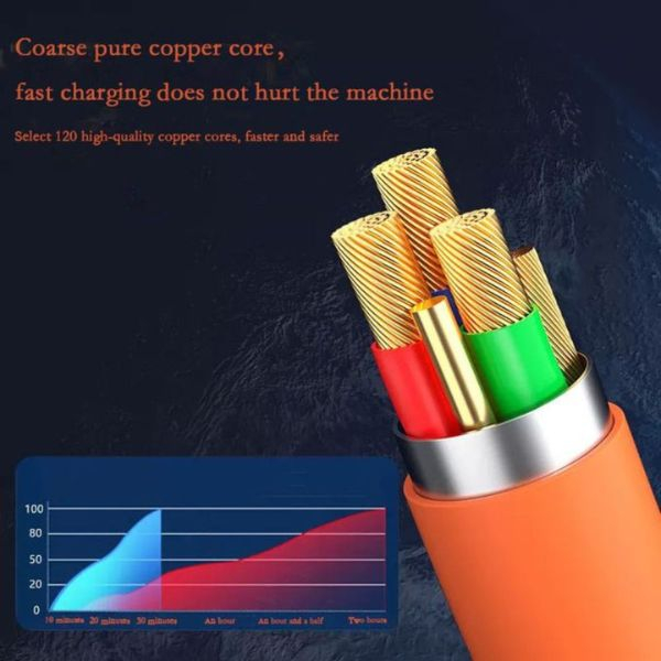Cablu de incarcare Fast Charge 3 in 1, inclus in acest set, suporta pana la 120 W si ofera incarcare rapida si eficienta pentru o gama variata de dispozitive. Cu o lungime de 2 metri si un design inteligent, acesta include trei conectori diferiti, eliminand necesitatea mai multor cabluri.