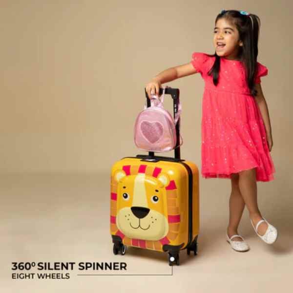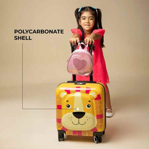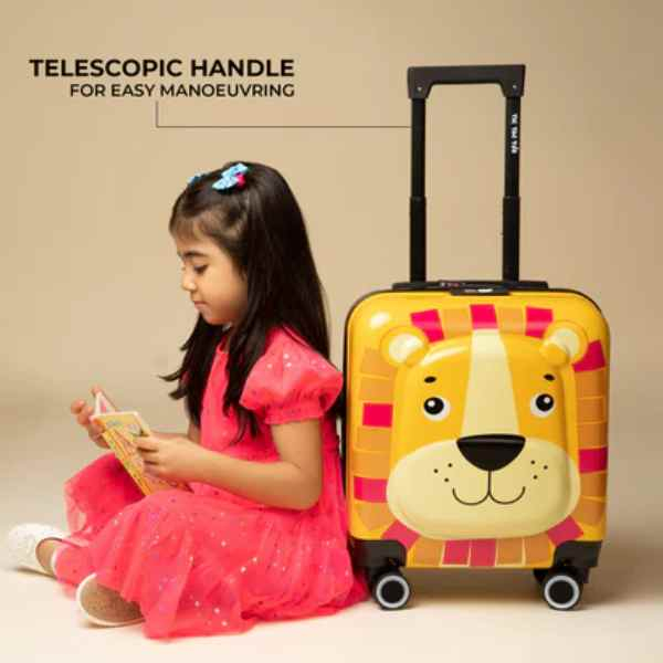 Pregătește-l pe cel mic pentru călătorii pline de zâmbete cu trolerul pentru copii, model Leu 3D, conceput pentru confort, siguranță și distracție. Designul simpatic și forma compactă îl fac ideal pentru vacanțe sau grădiniță. Fabricat din ABS și policarbonat durabil, oferă rezistență la zgârieturi și impacturi. Mânerul telescopic ajustabil, încuietoarea cu cifru și cele 4 roți pivotante duble asigură manevrare ușoară și siguranța bagajelor. Interiorul este căptușit și compartimentat, cu spațiu pentru haine și jucării, iar greutatea redusă de 2.63 kg îl face potrivit pentru copii între 3-10 ani.
