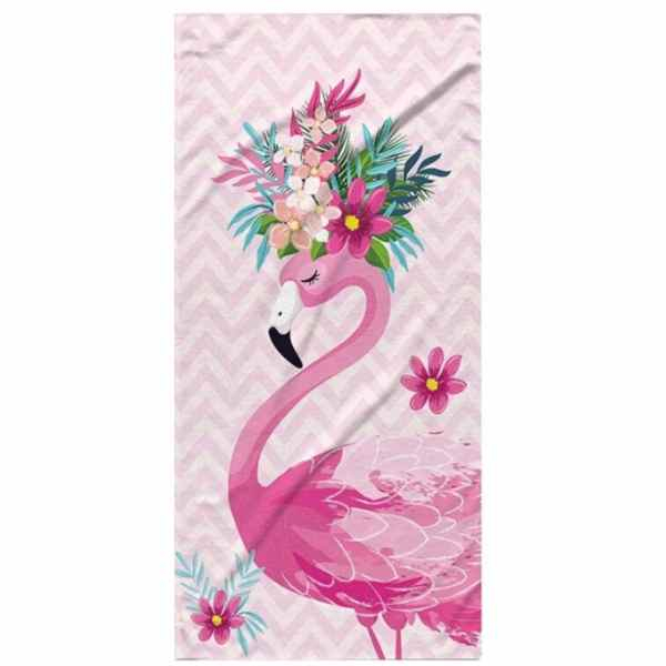 Prosop Mercaton pentru Plaja, Model Flamingo, Microfibra, Uscare Rapida, 266 g/m², 150 x 70 cm, Roz