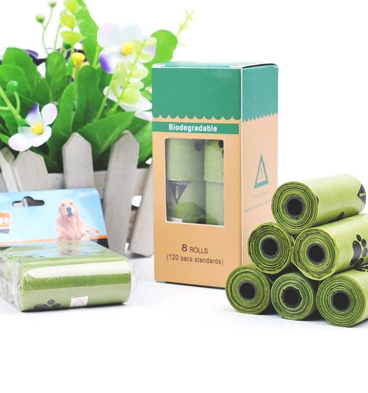Set 120 saci igienici pentru caini, 100% biodegradabili, Verde, 22 x 33 cm
