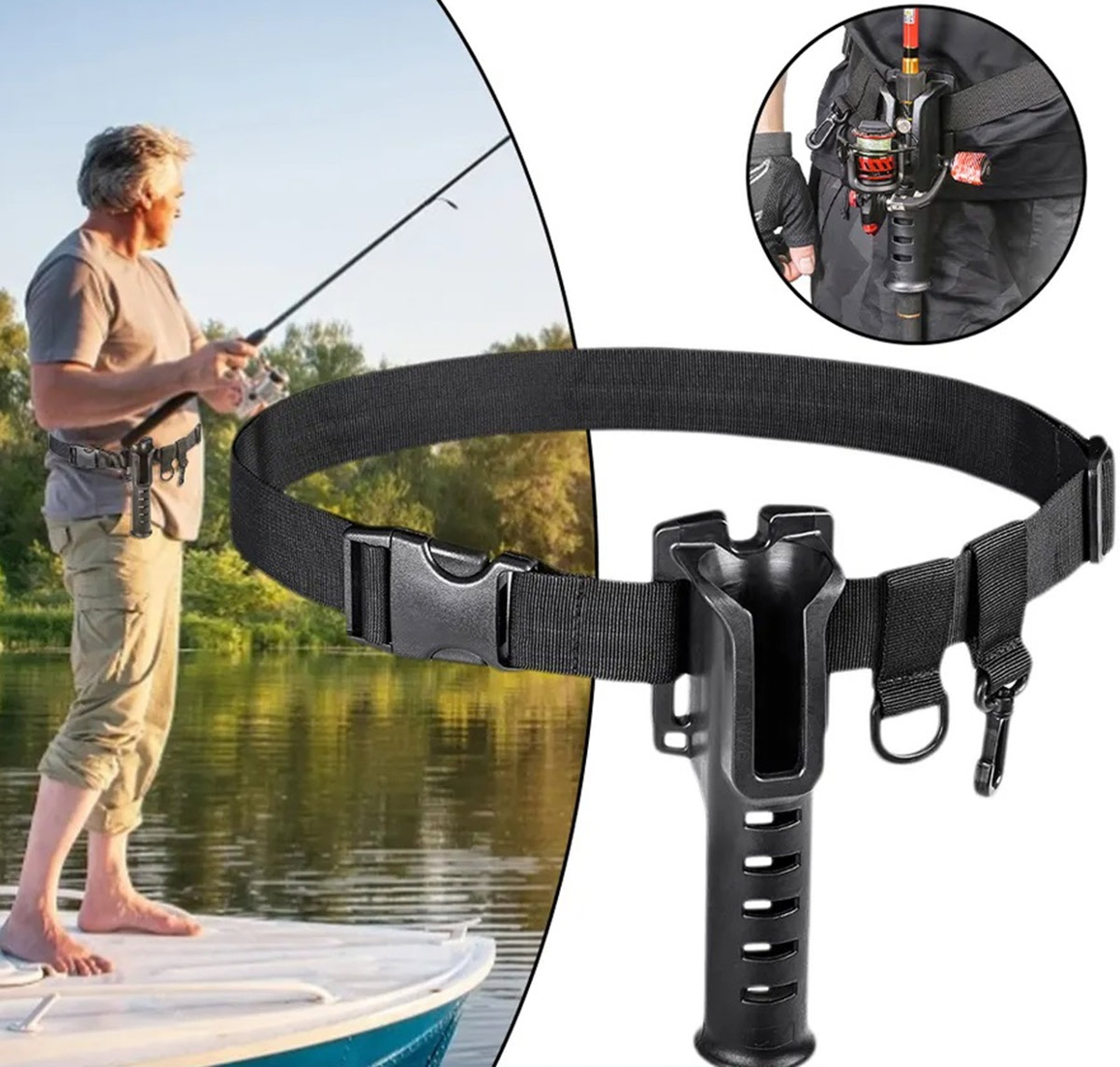 Permite transportul comod al undiței, oferind suport și facilitând agățarea accesoriilor. Ajustabilitatea asigură confort și adaptabilitate pentru diverse dimensiuni ale taliei.