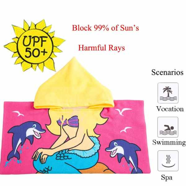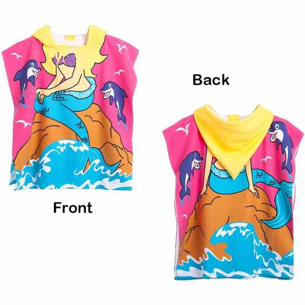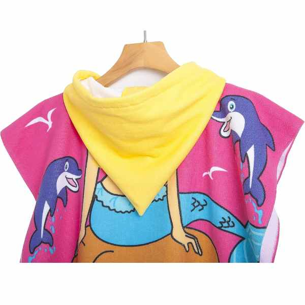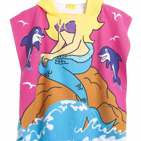 Material moale si confortabil, ideal pentru pielea delicata a copiilor. Absorbtie rapida si uscare eficienta. Model practic cu gluga integrata, usor de purtat ca pelerina halat. Design atractiv cu imprimeu sirena, rezistent la spalari frecvente.