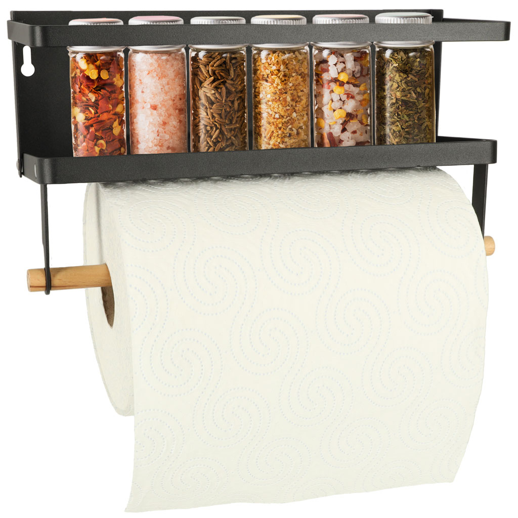 • Design 2în1: suport pentru condimente și prosop de hârtie