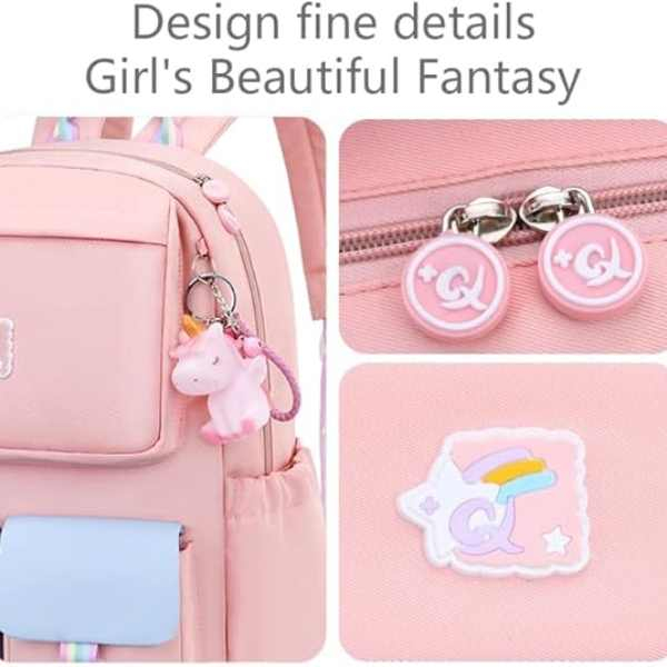 Oferă multiple buzunare pentru o organizare practica, este usor de curatat si confortabil datorita panoului spate respirabil. Materialele impermeabile asigura rezistenta la uzura, iar designul este atractiv pentru fetite.