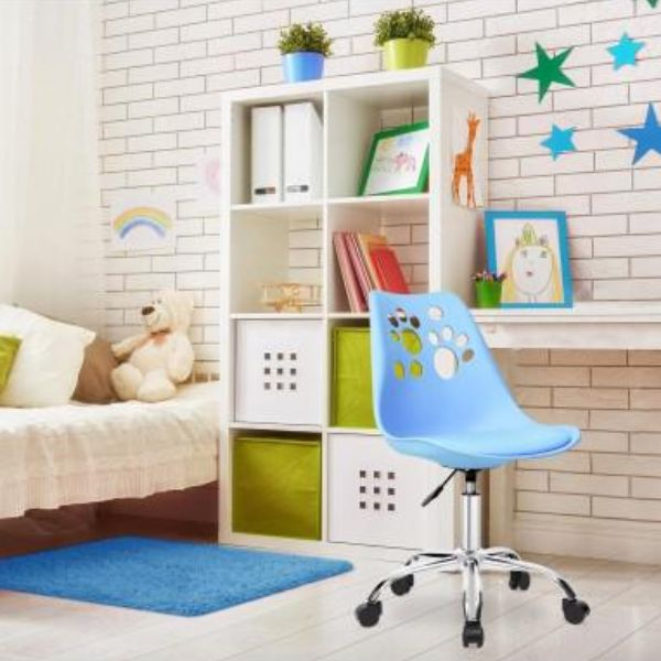 Combinația de alb și albastru conferă un aspect modern și fresh, potrivit pentru birouri, studiouri de acasă sau camerele copiilor.