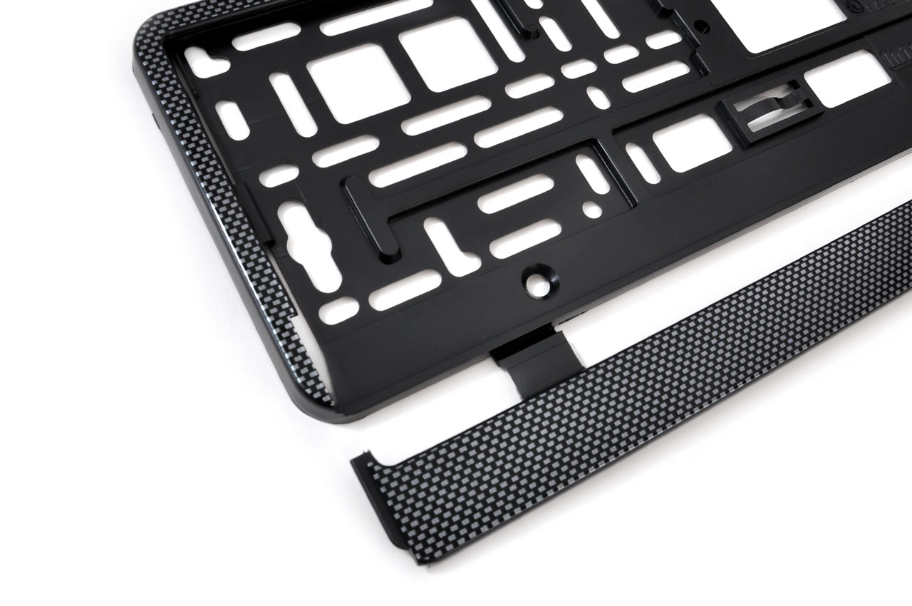 Suport numar inmatriculare finisaj carbon, realizat din plastic durabil. Acest suport este conceput pentru fixarea plăcuței de înmatriculare, oferind un aspect modern datorită finisajului cu textură de carbon.