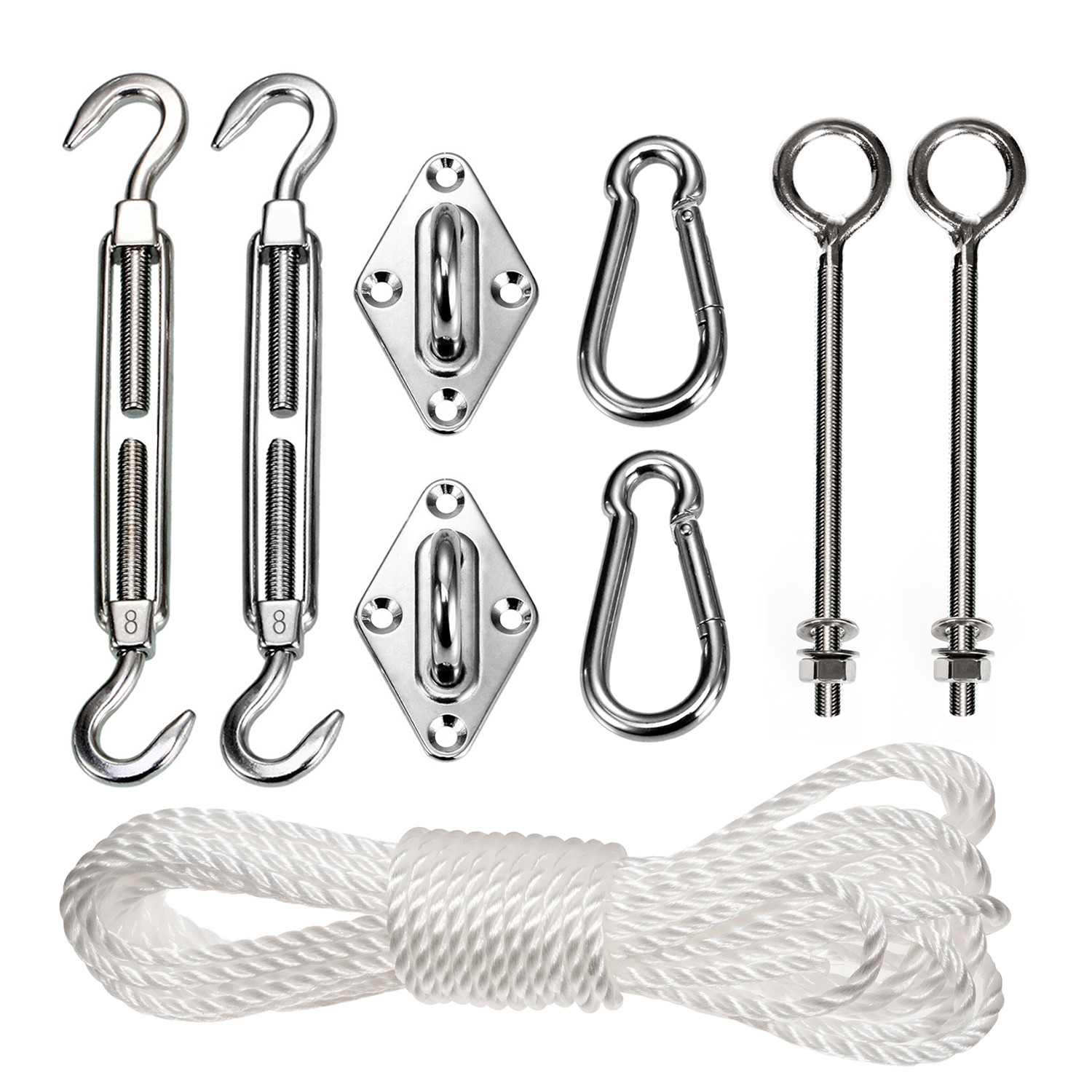 Set de montare din oțel inoxidabil de înaltă calitate pentru o umbrelă de soare. Se potrivește majorității vele disponibile pe piață astăzi. Este o soluție foarte simplă și economică, care vă permite să instalați rapid și eficient o velă solară.